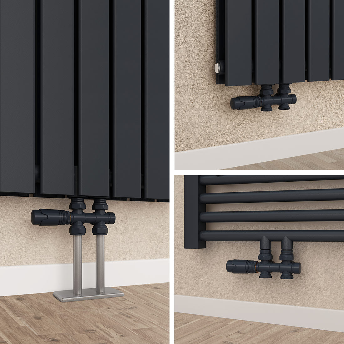 EMKE Robinet de Radiateur, Robinet Thermostatique pour Radiateur, Anthracite/Blanc/Chrome